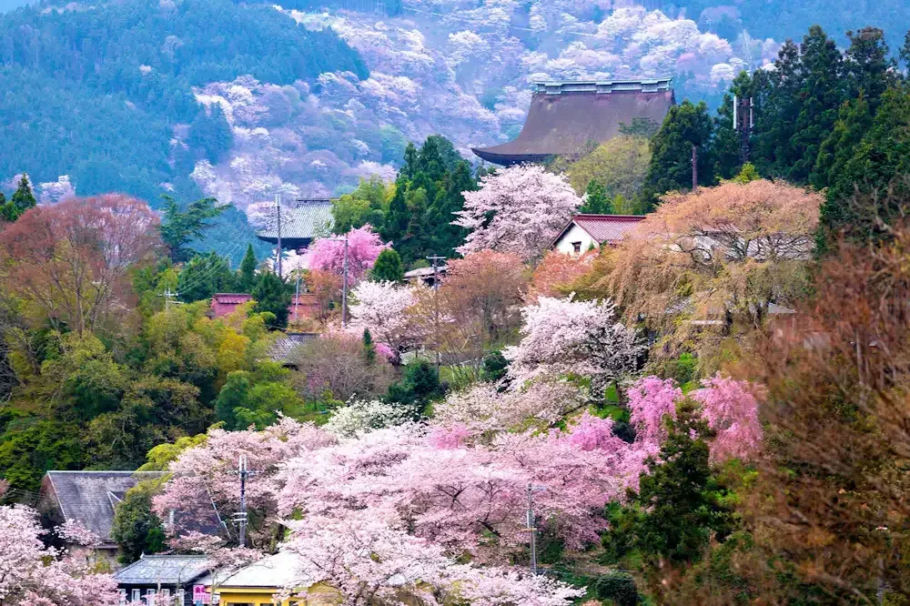 Mount Yoshino in Nara is one of Japan’s most legendary sakura destinations, with over 30,000 trees layered across mountain slopes. Visually dramatic. Historically import